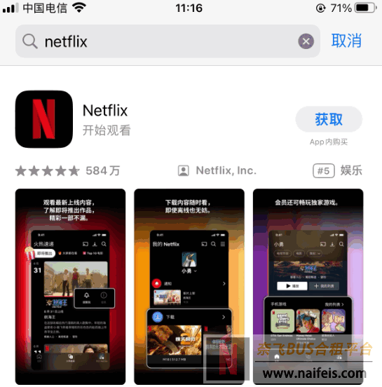 6、这个时候再搜索“Netflix”,就可以顺利的找到,并下载安装。